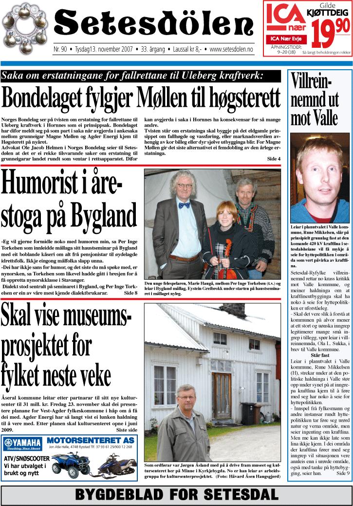 | gjeldande | 20. juli 2011 kl. 23:02 | 725 × 1 038 (226 KB) | Harald Haugland (diskusjon | bidrag) | Etter avtale med Sigurd Haugsgjerd Kategori:Setesdølens forsider 2007 |