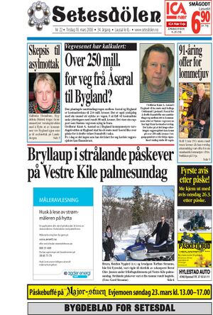 Setesdølen nr. 22, 2008 kom ut tysdag 18. mars 2008. Setesdølen hadde 12 sider denne dagen.