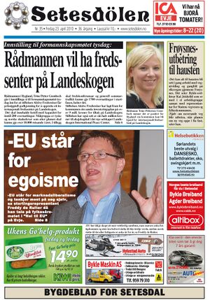 Setesdølen nr. 35, 2010 kom ut fredag 23. april 2010. Setesdølen hadde 16 sider denne dagen.