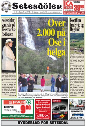 Setesdølen nr. 63, 2010 kom ut tysdag 23. juli 2010. Setesdølen hadde 12 sider denne dagen.