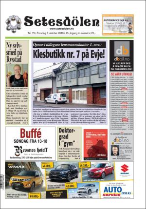 Setesdølen nr. 76, 2019 kom ut torsdag 3. oktober 2019. Setesdølen hadde 16 sider denne dagen.