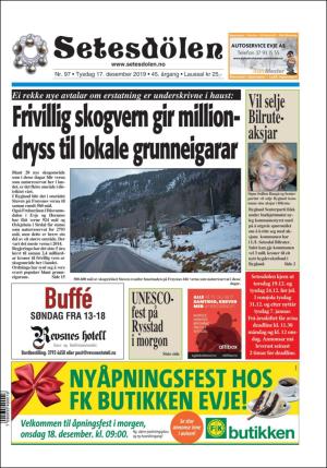 Setesdølen nr. 97, 2019 kom ut tysdag 17. desember 2019. Setesdølen hadde 20 sider denne dagen